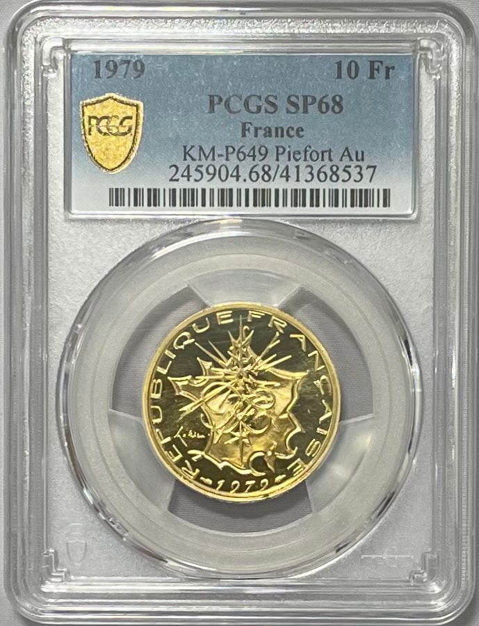 【動画あり】アンティークコイン フランス 1979年 10フランマシューピエフォー金貨 PCGS-SP68