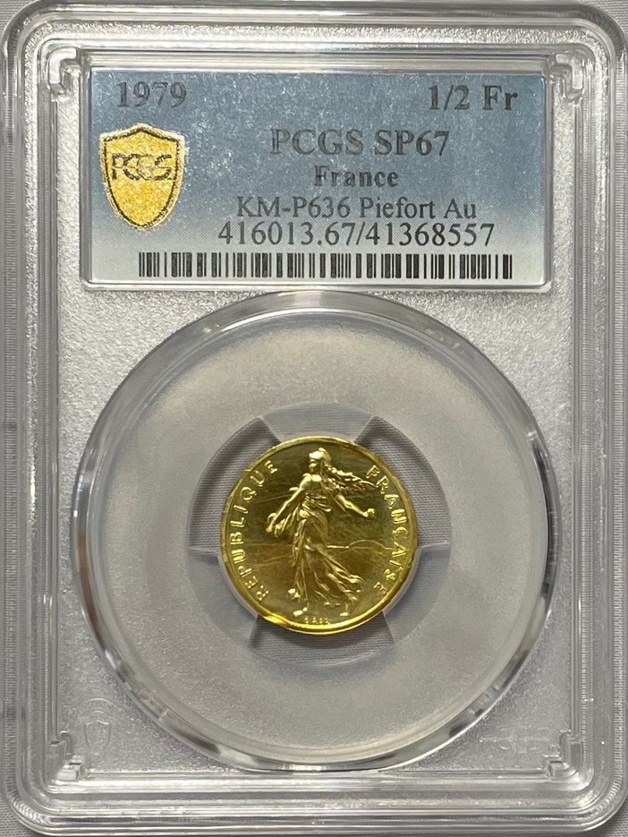 【動画あり】アンティークコイン フランス 1979年 1/2フランピエフォー金貨 PCGS-SP67
