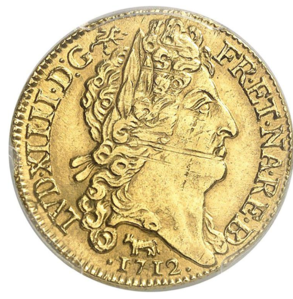 【動画あり】フランス 1712年 ルイ14世 ルイドール金貨1712-Pau PCGS MS62