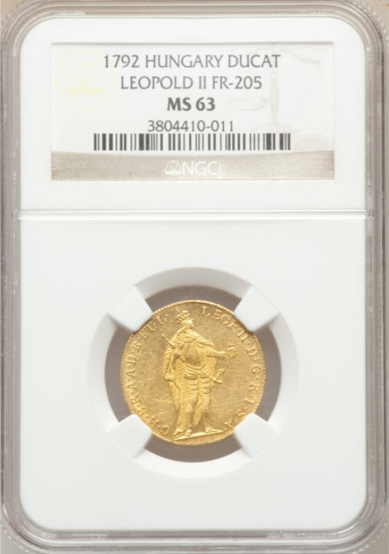 【動画あり】ハンガリー1792年レオポルト2世ダカット金貨NGC社MS-63
