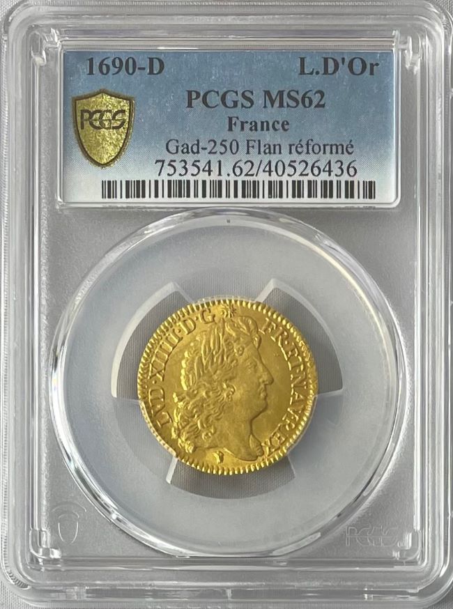 【動画あり】フランス 1690年 ルイ14世 ルイドール金貨1690-D PCGS MS62
