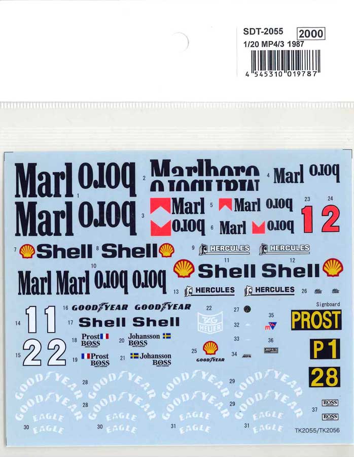1/20 MP4/3 1987 - Spare Decalfor TK2055STUDIO27 【Spare Decal】