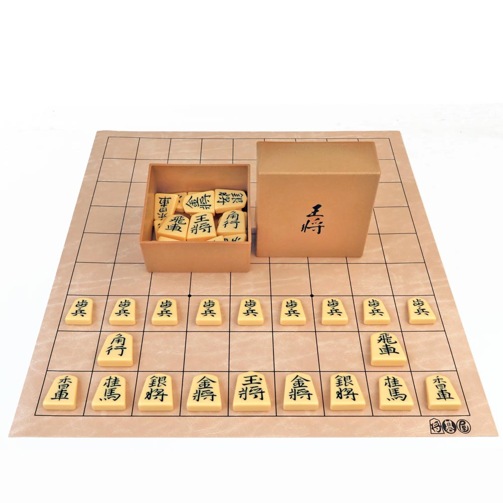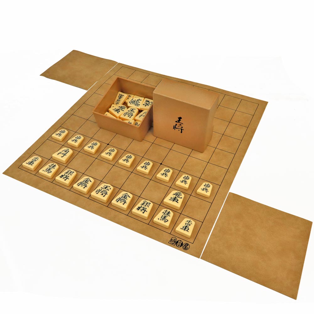 将棋セット 将碁屋マット将棋盤(革柄)セット(プラ将棋駒王将・駒台)※シックな革のような柄の塩ビ将棋盤セット