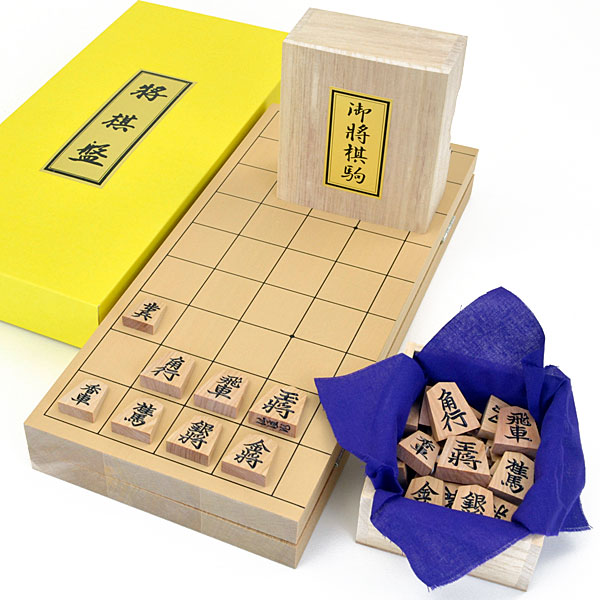 将棋セット 新桂5号折将棋盤セット(木製将棋駒黄楊上彫駒)