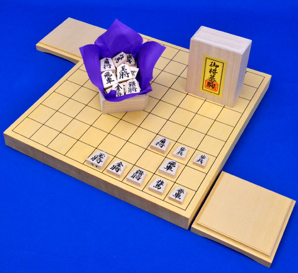 木製将棋セット 桧1寸卓上将棋盤セット(将棋駒黄楊上彫駒)