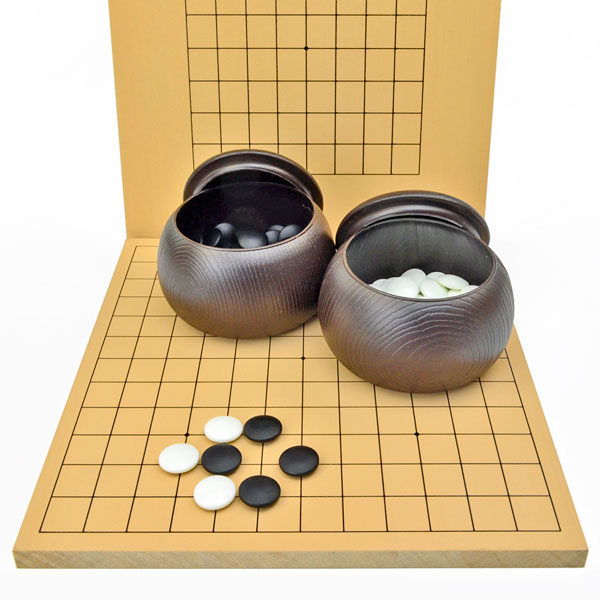 初心者の木製囲碁入門セット※木製新桂13路9路盤・プラスチック碁石椿(白石84粒・黒石85粒)・ブロー碁笥・囲碁入門本(1冊選択)