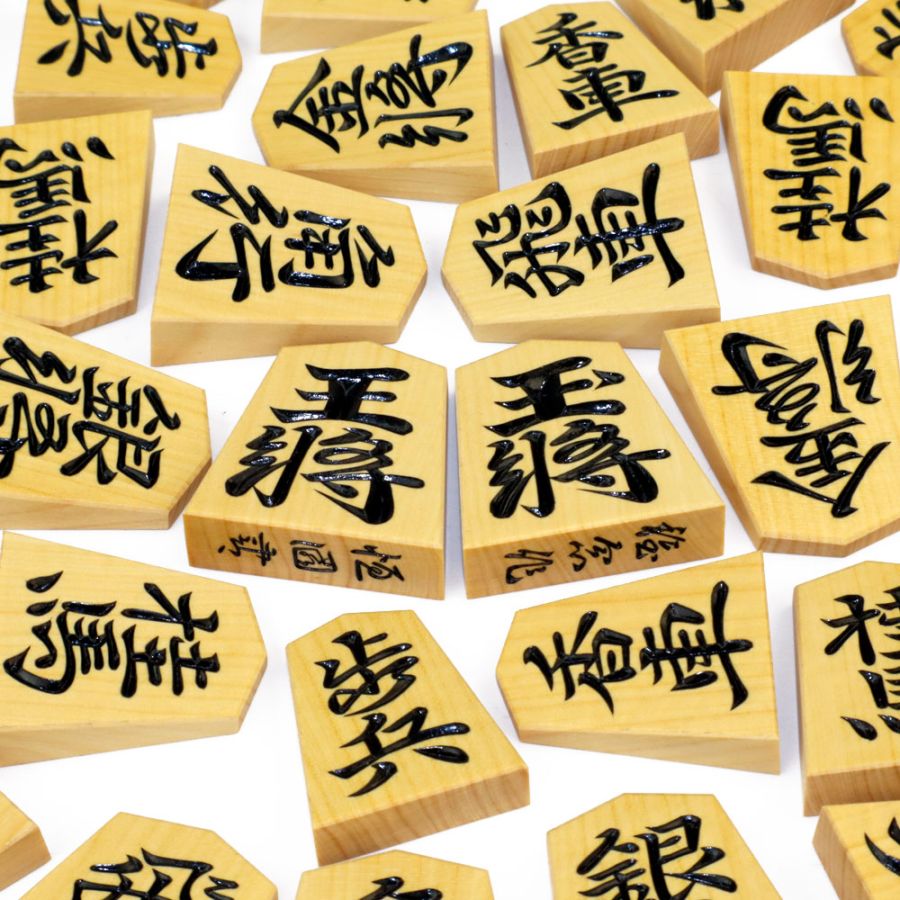 将棋駒 稚念作 御蔵島産本黄楊材 彫駒 錦旗書 面取り加工 ※桐平箱付