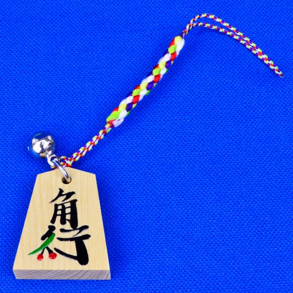 鈴付きの山形県天童製の将棋駒ストラップ 角行とさくらんぼ ※将棋駒の高級材御蔵島産本黄楊材 山形県天童市の書き駒師による手書きの将...