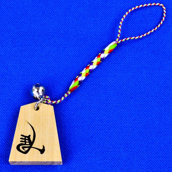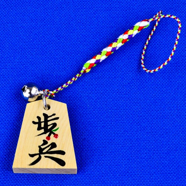 鈴付きの山形県天童製将棋駒ストラップ 左馬 ※将棋駒の高級材御蔵島産本黄楊材 山形県天童市の書き駒師による 手書きの将棋駒ストラッ...