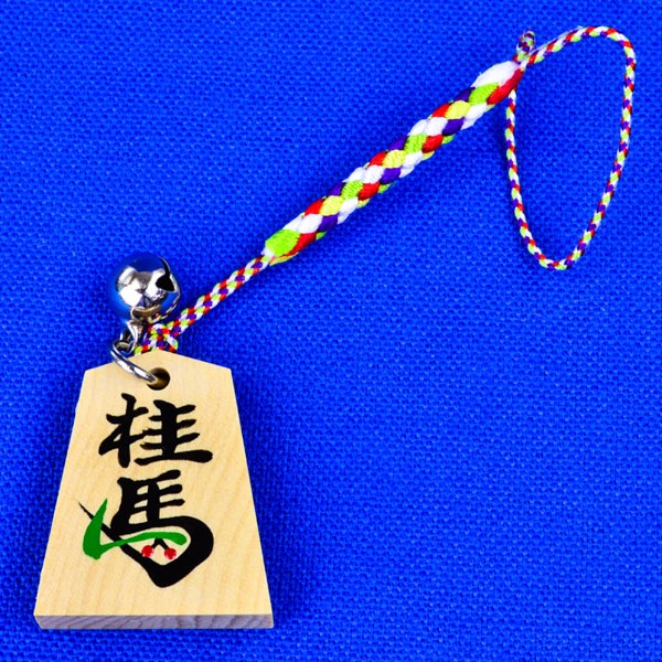 鈴付きの将棋駒ストラップ 跳ね馬 ※将棋駒の高級材御蔵島産本黄楊材 山形県天童市の書き駒師による手書きの将棋駒ストラップ