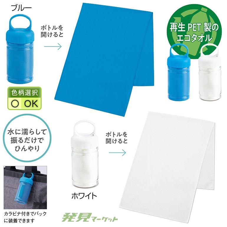 再生PETアイスタオル(カラビナ付ボトル入)(色選択)
