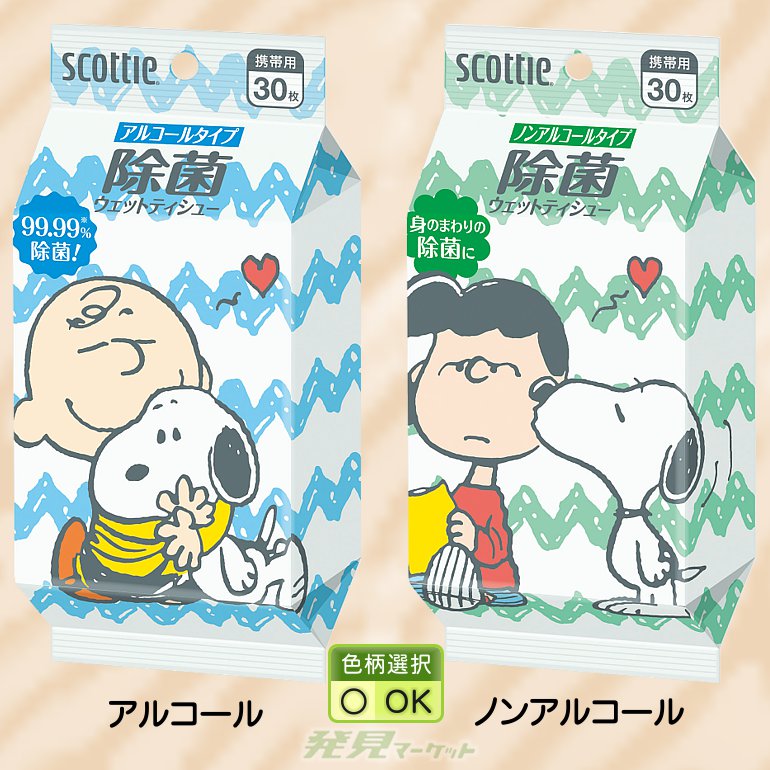 スコッティ除菌ウェットティシュー スヌーピー30枚入(種類選択)