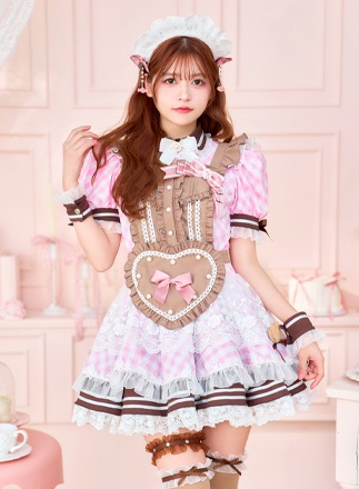【即日発送】【景井ひな着用】ピンクチョコレートギンガムメイド《バレンタインコスプレ12点セット》【Malymoon/マリームーン】...