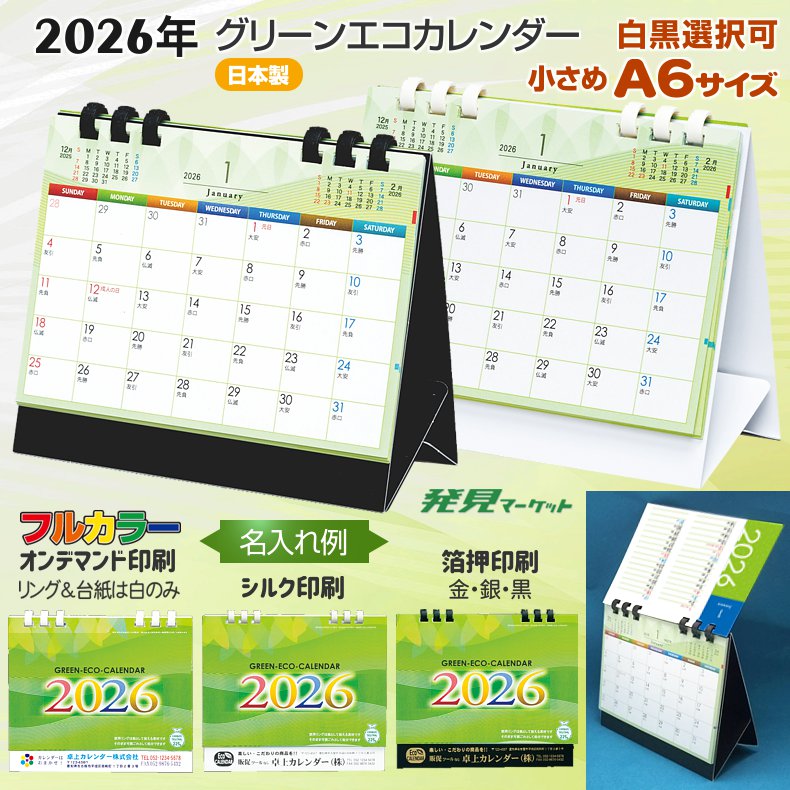 5連エコカレンダー(B6サイズ) 2026年 TS-500