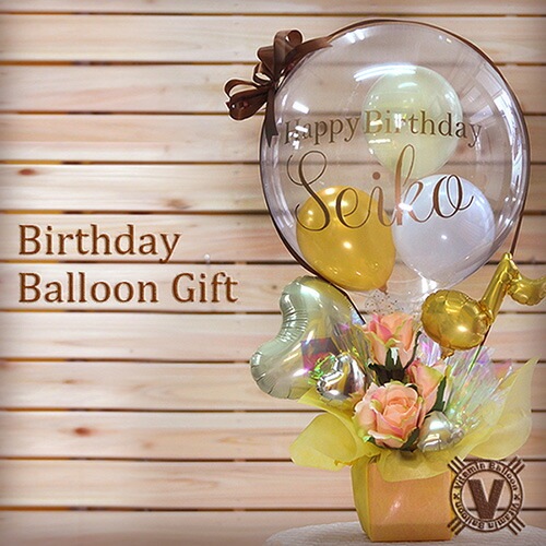 誕生日プレゼント ゴールドプリズム / バースデー プレゼント 名入れ バルーン電報 シルクフラワー バルーンギフト