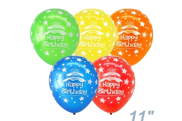 バースデーケーキ柄メタリックゴム風船5色アソート50枚