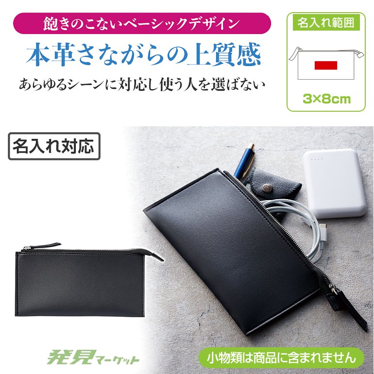 ラ・シック レザー調フラットペンポーチ