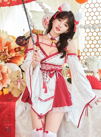 【即日発送】セクシー白キツネ巫女レディ《ハロウィンコスプレ6点セット》【Malymoon/マリームーン】【9893】