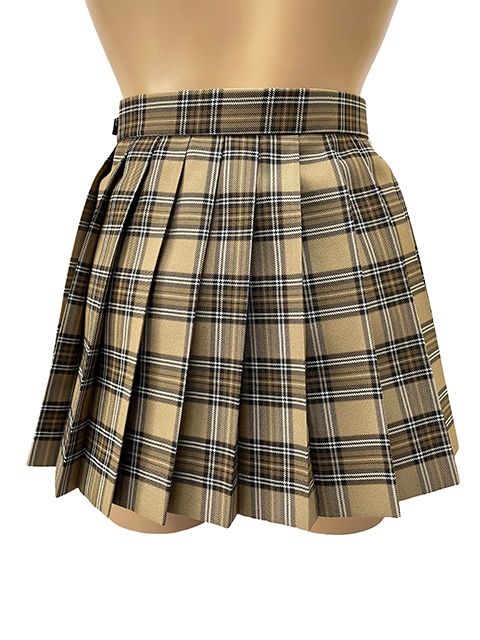 【日本製】スクールプリーツチェック柄スカート(ベージュ×黒×うす茶×白)◆W60~85/丈30・40cm