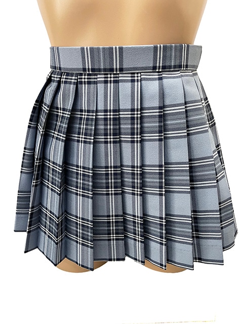 【日本製】スクールプリーツチェックスカート(水色×グレーサックス×紺×白)◆W60~85/丈30・40cm