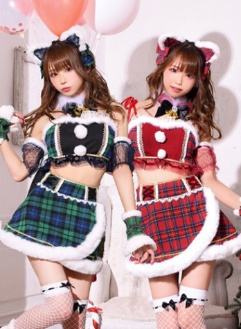 【即日発送】2タイプ猫耳チェックサンタ《クリスマスコスプレ9-10点セット》【Malymoon/マリームーン】【s9620】