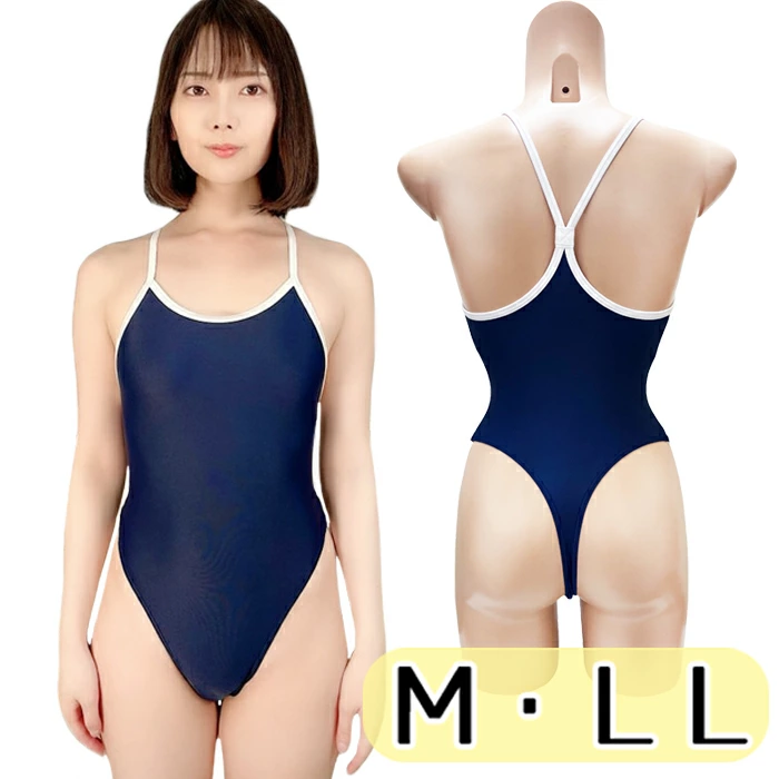 【コスメイトオリジナル】マイクロファイバー スベスベTバックスクール水着◆紺×白/M・LL