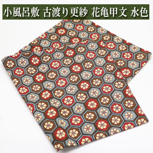 小風呂敷 古渡り更紗 花亀甲文 水色 和装バッグ 茶道具 木綿 茶器 茶筅 茶碗 棗 古帛紗 袱紗 茶巾 炭道具 灰 茶道具類 柄...