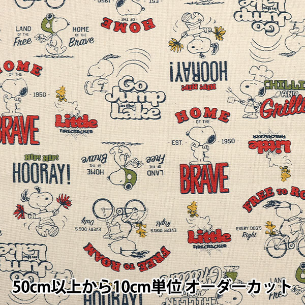 送料無料/ 10cm単位 続けてカット スヌーピー アメリカーナ 生地 総柄 コットン プリント キャラクター 布 手作り 手芸 ...