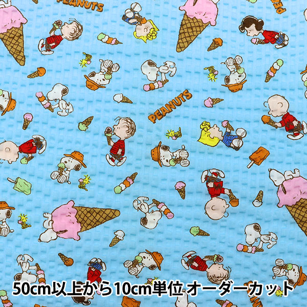 【数量5から】 生地 『リップル スヌーピーとアイスクリーム柄 ライトブルー G-3599-1B』 KOKKA コッカ