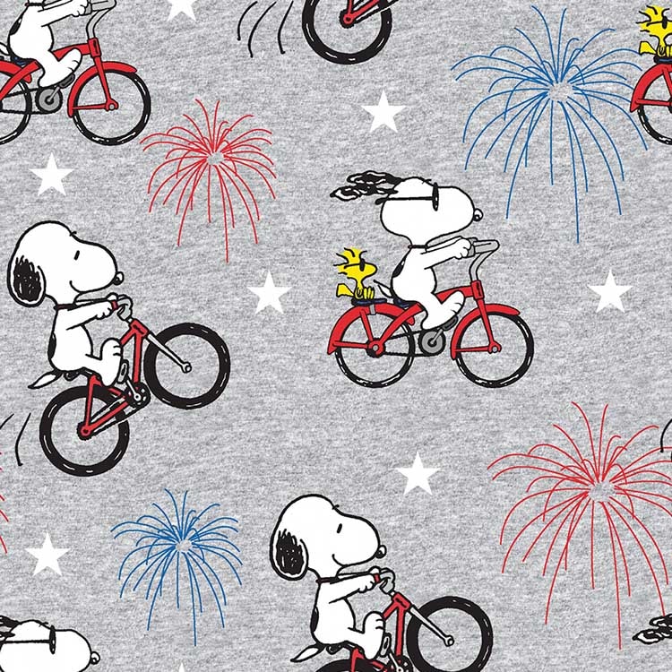 送料無料/ 10cm単位 続けてカット スヌーピー 花火 男の子 女の子 生地 グレー 総柄 コットン プリント キャラクター 布...
