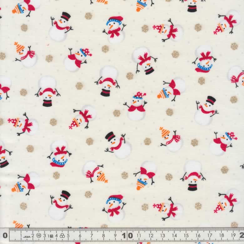クリスマス生地(布)スノーマン モチーフ (オフホワイト)30cmより