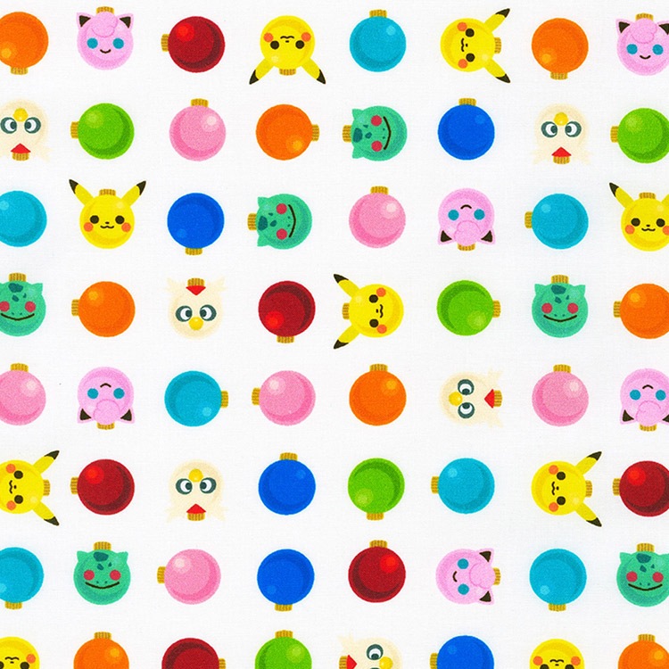 送料無料/ 10cm単位 続けてカット ポケットモンスター ポケモン ホワイト/カラフル 生地 ピカチュー 総柄 コットン プリン...