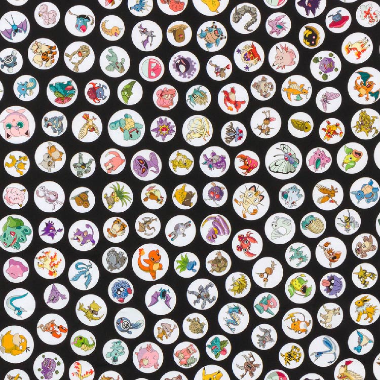 送料無料/ 10cm単位 続けてカット ポケモン ブラック 109cm 生地 総柄 ピカチュー コットン プリント キャラクター ...