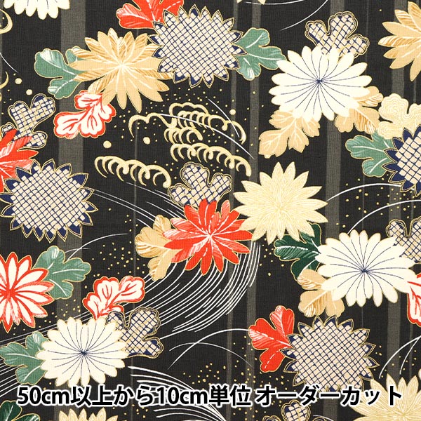【数量5から】 生地 『シーチング 百華繚蘭 黒 HR3400-14F』 Quilt Gate キルトゲイト