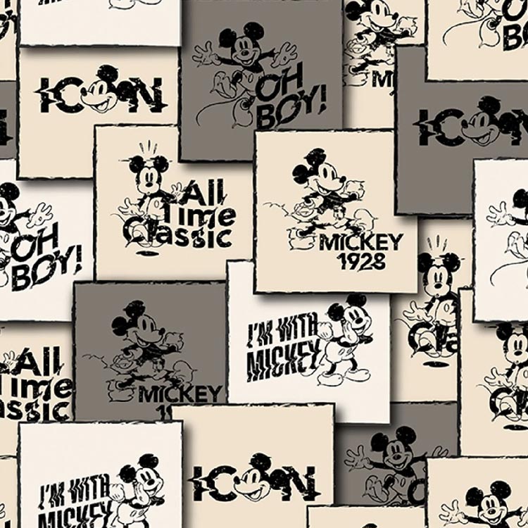 送料無料/ 10cm単位 続けてカット ディズニー ミッキー ビンテージ 生地 総柄 ミッキーマウス コットン プリント キャラク...
