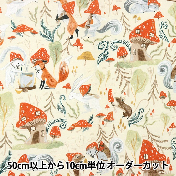 【数量5から】 生地 『USAコットン マッシュルーム・シティ DRR1930-STRAW』