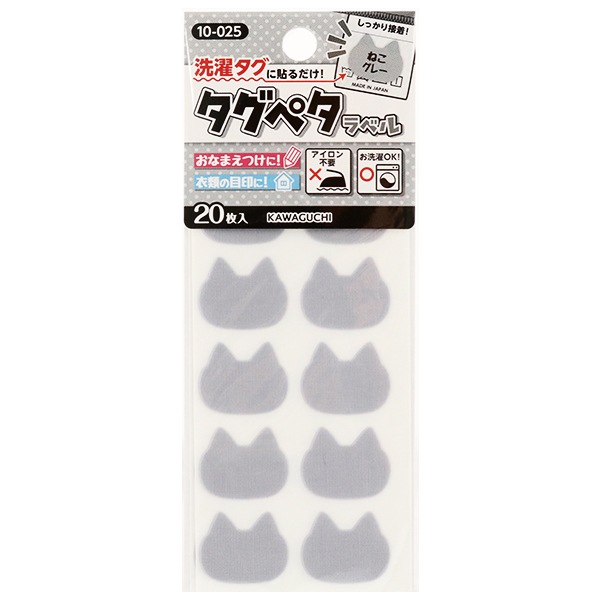 お名前ラベルシール 『洗濯タグに貼るだけ! タグペタラベル ねこグレー 10-025』 KAWAGUCHI カワグチ 河口