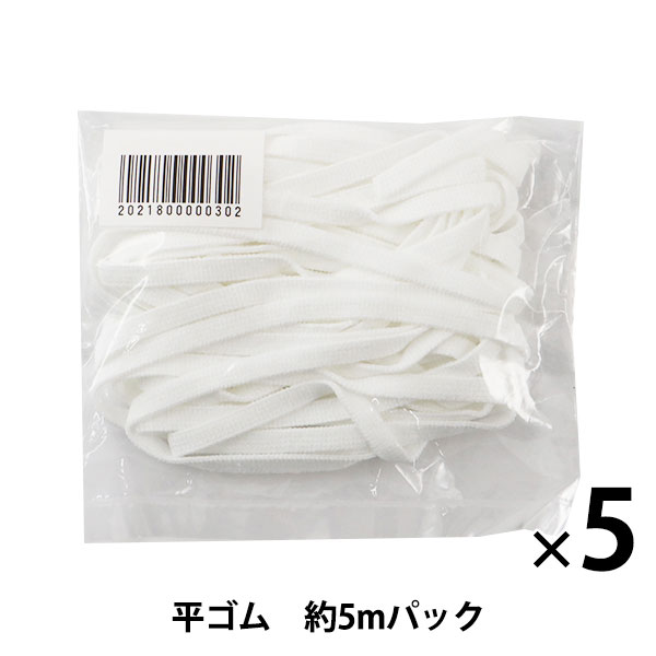 ゴム 『平ゴム 5mパック 白×5個セット』