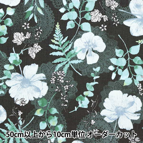 【数量5から】 生地 『シーチング ボタニカルプリント クロ AP22809-1E』 コスモテキスタイル