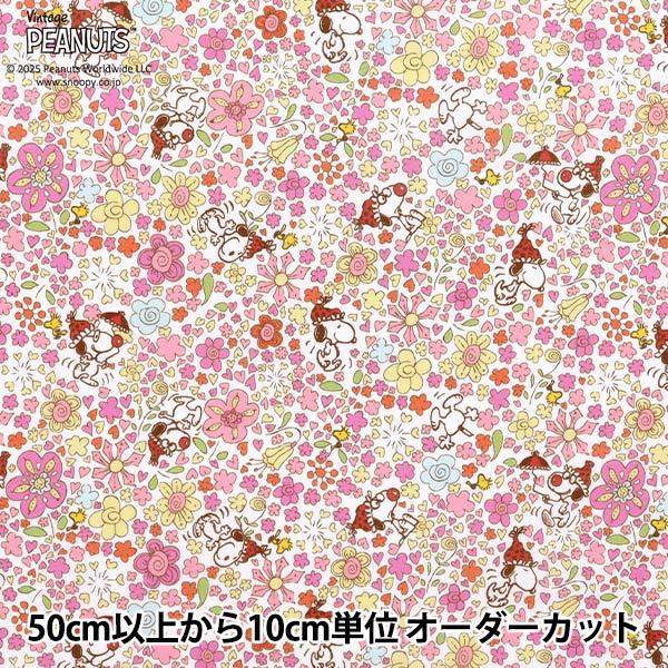 送料無料/ 10cm単位 続けてカット スヌーピー フローラル 生地 総柄 ウッドストック コットン プリント キャラクター 男の...