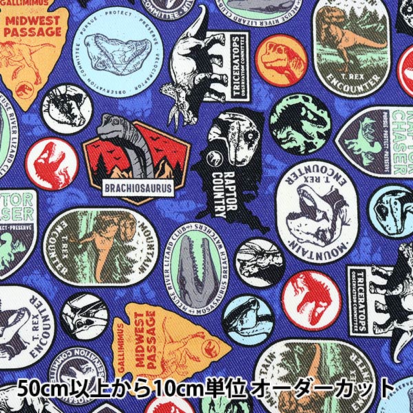 【数量5から】 生地 『T/Cツイル ジュラシック・ワールド ワッペン柄 ネイビー G-4185-1A』 KOKKA コッカ