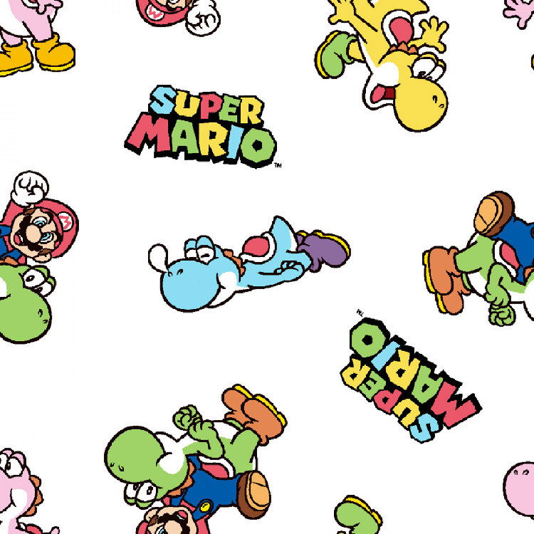 4月下旬入荷予約販売/送料無料/ 10cm単位 続けてカット マリオ and ヨッシー スーパーマリオ ロゴ 生地 総柄 コットン...