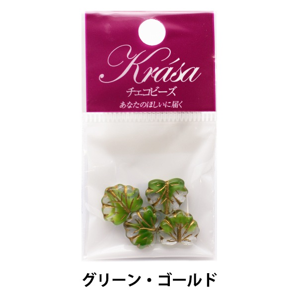 ビーズ 『チェコビーズ グレープリーフ グリーン・ゴールド 1.1cm×1.3cm 4個入り』