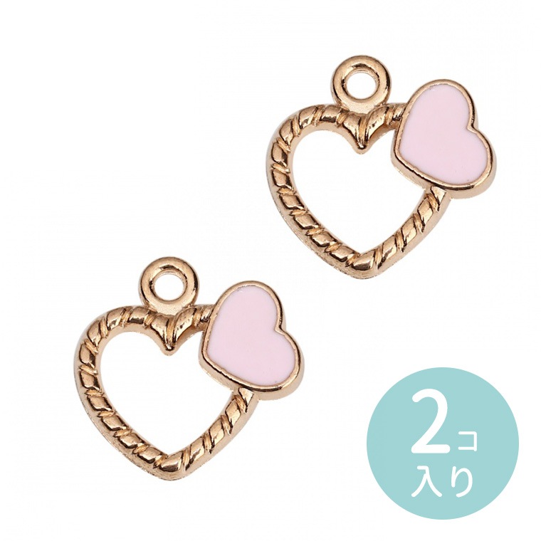18mm×18mm 2個入 メタルチャーム ハートフレーム ピンクのハート付 ピンクゴールド / ハート リース ベビーピンク ...