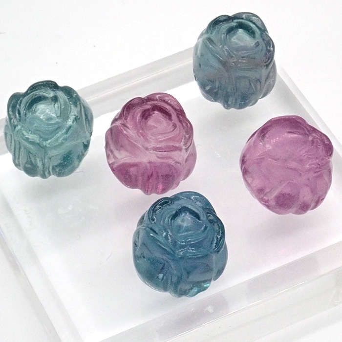 【フローライト】バラ 薔薇 横穴 1粒 約12*11.5mm 天然石 ビーズ アクセサリー材料