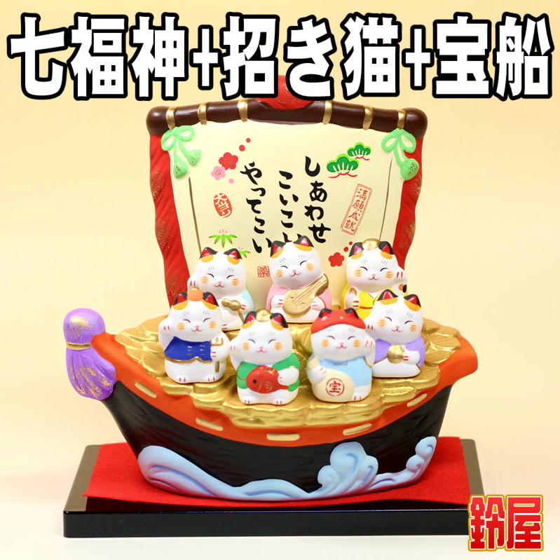 七福神宝船の置物(招き猫)|かわいい宝船の置物を販売