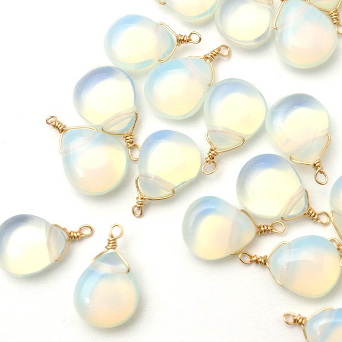 【K14kgfカラー/1個売り】ミルキークォーツ ペアシェイプ オパライト 約17×12mm 天然石チャーム