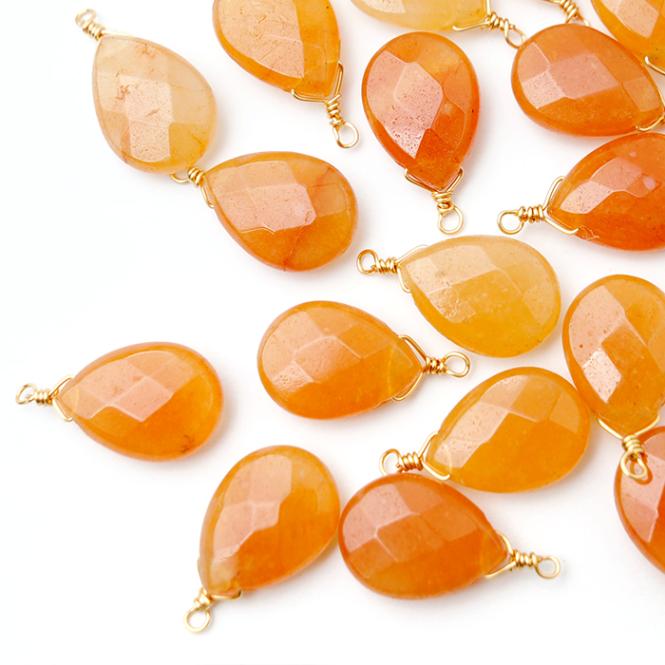 【1個売り】天然石 オレンジアベンチュリン ペアシェイプ 約19×14mm K14GFワイヤー 幸運