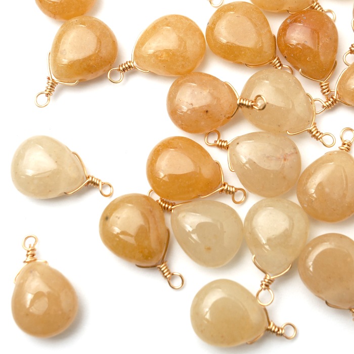 【14kgfカラー/1個売り】イエローアベンチュリン ペアシェイプ 天然石 約17×12mm 幸運 癒し ワイヤー
