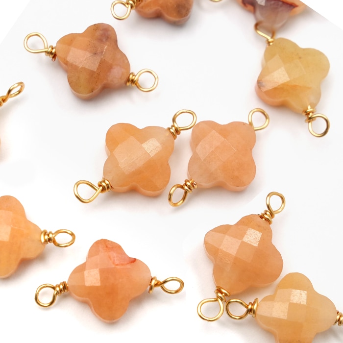 【K14GF/1個売り】グリーンアベンチュリン コネクター クローバーカット 天然石チャーム 約18×10mm